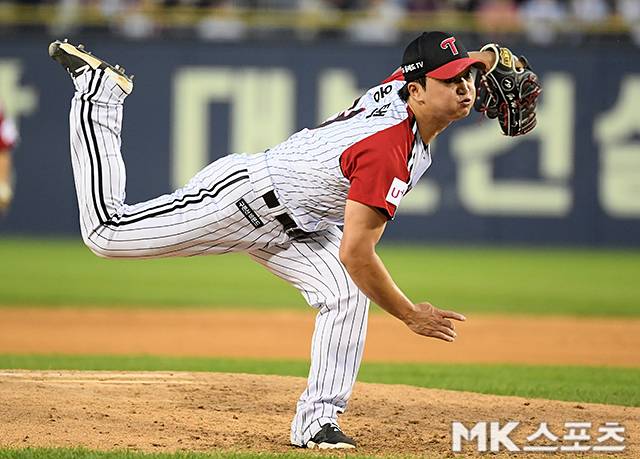 LG 고우석이 역투하고 있다.
