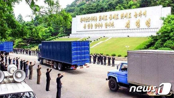 (평양 노동신문=뉴스1) = 북한 노동당 기관지 노동신문은 4일 "인민이 걱정하고 고민하는 곳에 언제나 당의 손길이 제일 먼저 가닿고 있다"며 당의 '인민 사랑'을 부각했다. 사진은 당의 지원 물품이 최근 급성 장내성 전염병이 발생한 황해남도 해주시 주민들에게 전달되는 모습.