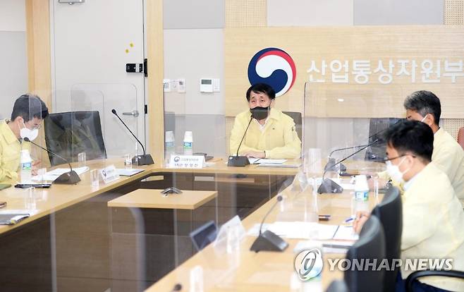(서울=연합뉴스) 장영진 산업통상자원부 1차관이 4일 정부세종청사 산업부 영상회의실에서 열린 산업부 산하 주요 공공기관 사이버보안 대응태세 점검회의를 주재하고 있다. 2022.7.4 [산업통상자원부 제공. 재판매 및 DB 금지]