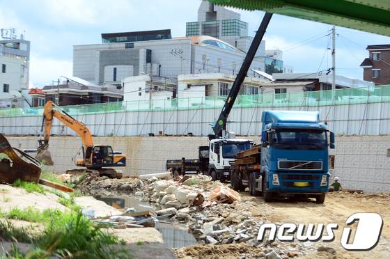 (광주=뉴스1) 정다움 기자 = 4일 오전 광주 북구 신안동 신안교 인근 서방천에서 장마철 침수 대비를 위한 개수공사가 진행되고 있다.
