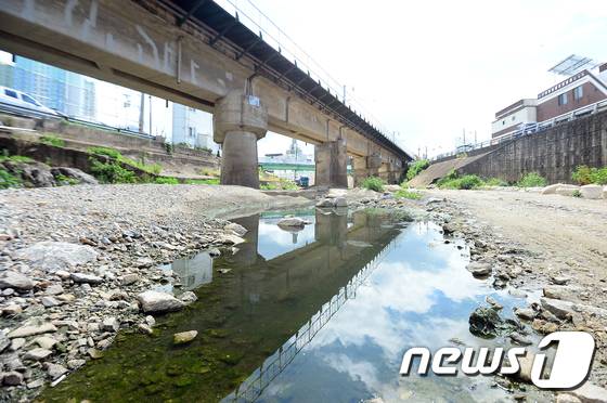 (광주=뉴스1) 정다움 기자 = 4일 오전 광주 북구 신안동 신안교 인근 서방천에서 하천수가 고여있다.