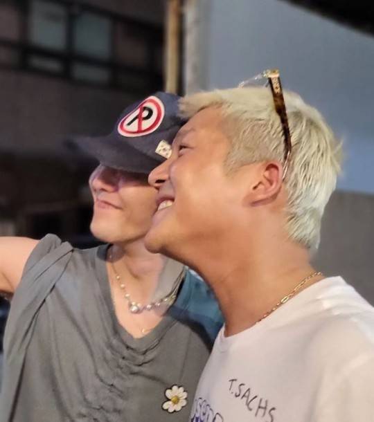 공개된 사진 속에서 조세호는 지드래곤과 나란히 서서 한 곳을 바라보며 환한 미소를 짓고 있다.