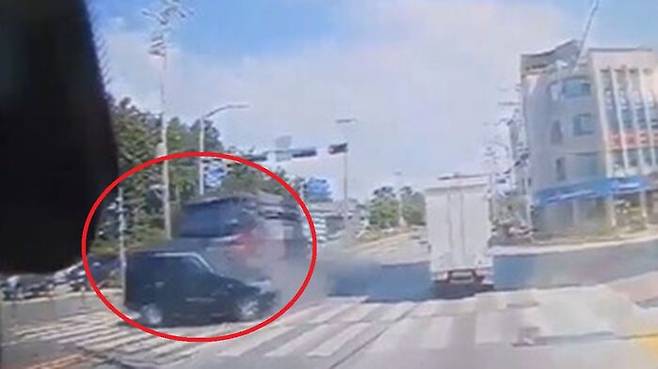[영상] 신호위반 25t 덤프트럭, SUV 충돌 후 한참을 끌고 갔다