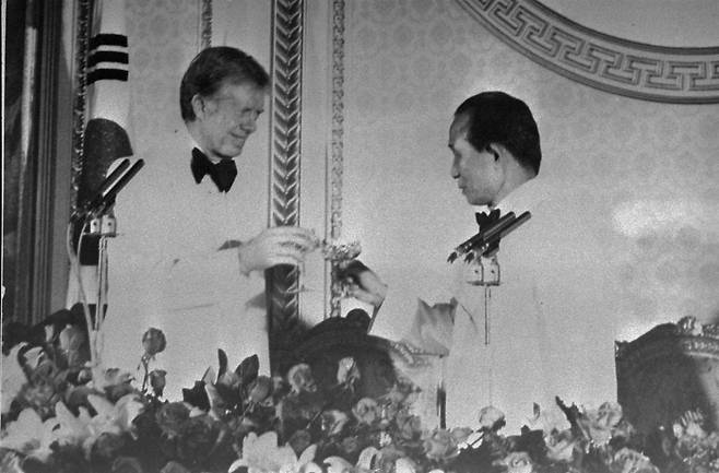그런 박정희에 맞서 카터도 즉석에서 결례를 도발했다. 주한미군 주둔의 필요성을 길게 강의하는 박정희 앞에서 메모를 끄적대는 모습을 연출한 것이다. 그러더니 그 쪽지를 해롤드 밴스 국무장관에게 건네는 것이었다. "이 자가 2분 이내에 입을 닥치지 않으면 나는 이 방을 나가 버리겠다"는 글이 적힌 메모지였다.