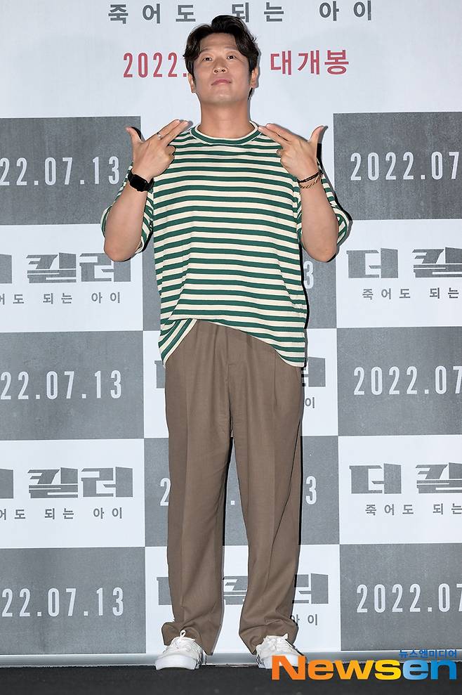 배우 최기섭이 7월 4일 오후 서울 용산구 용산CGV아이파크몰에서 진행된 영화 '더 킬러: 죽어도 되는 아이'(감독 최재훈) 언론 배급 시사 및 기자간담회에서 포즈를 취하고 있다.