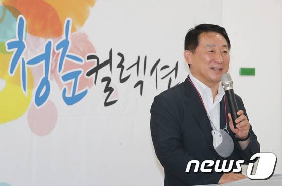 (대전=뉴스1) 김기태 기자 = 4일 오후 대전 서구청에서 열린 2022년 청춘컬렉션 청년예술작가전 큐레이팅에서 서철모 서구청장이 인사말을 하고 있다. 2022.7.4/뉴스1