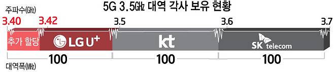 LG유플러스가 5세대(5G) 이동통신 주파수 3.4~3.42㎓ 대역 할당을 단독 신청했다.