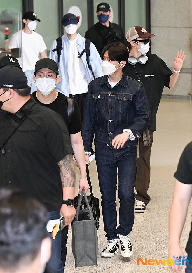 그룹 몬스타엑스가 7월 4일 오후 사우디 콘서트 일정을 마치고 인천광역시 중구 운서동 인천국제공항을 통해 입국하고 있다.