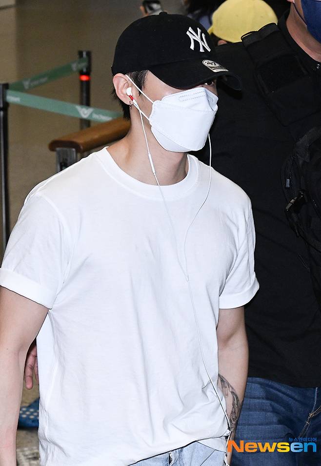 그룹 몬스타엑스 아이엠이 7월 4일 오후 사우디 콘서트 일정을 마치고 인천광역시 중구 운서동 인천국제공항을 통해 입국하고 있다.