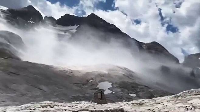 이탈리아 북부 돌로미티 산맥의 최고봉, 해발 3천3백43미터 마르몰라다 산에서 정상으로 가는 길에 자리해 있던 큰 빙하 덩어리가 무너지면서 대형 산사태로 이어진 겁니다.