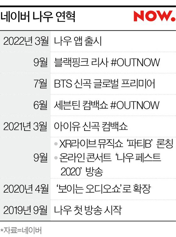 나우에서 인기 아이돌의 스페셜 공연 등 음악과 아티스트 콘텐츠가 차지하는 비중은 70% 정도다. 초기 취지를 이어가자는 생각이 내부에서 공감대를 형성했다.