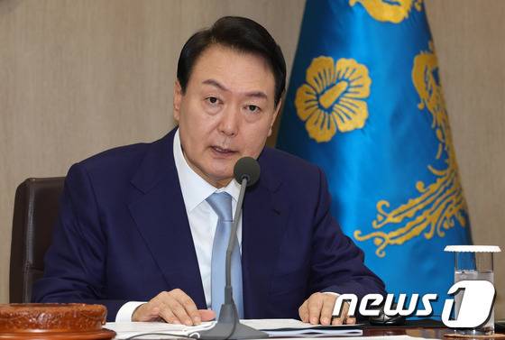 (서울=뉴스1) 오대일 기자 = 윤석열 대통령이 5일 용산 대통령실 청사 국무회의실에서 열린 제30회 국무회의에서 모두발언을 하고 있다. (대통령실사진기자단) 2022.7.5/뉴스1