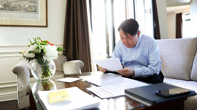 다시 돌아가 보자. 대통령실은 윤 대통령이 나토정상회의 준비를 했다고 설명했다. 국무회의 안건 결재하는 것이 나토정상회의 준비에 들어가지 않는다고 하기도 어렵다. 다만 물음표를 지우기에는 역부족이라는 생각이다. 대통령실의 당초 설명에 부합하는 메시지가 있었다고 보기 어려워서다. 설정샷에 설정이 없었다는 얘기다.