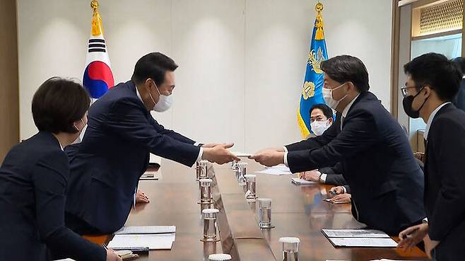 이번처럼 보일 것으로 기대한 것은 안 보였고, 안 보일 것으로 예상한 것은 보이는 경우도 있다. 윤석열 대통령이 5월 10일 대통령실 접견실에서 일본 하야시 요시마사 외무상으로부터 기시다 총리의 취임 축하 친서를 전달받는 장면이다.