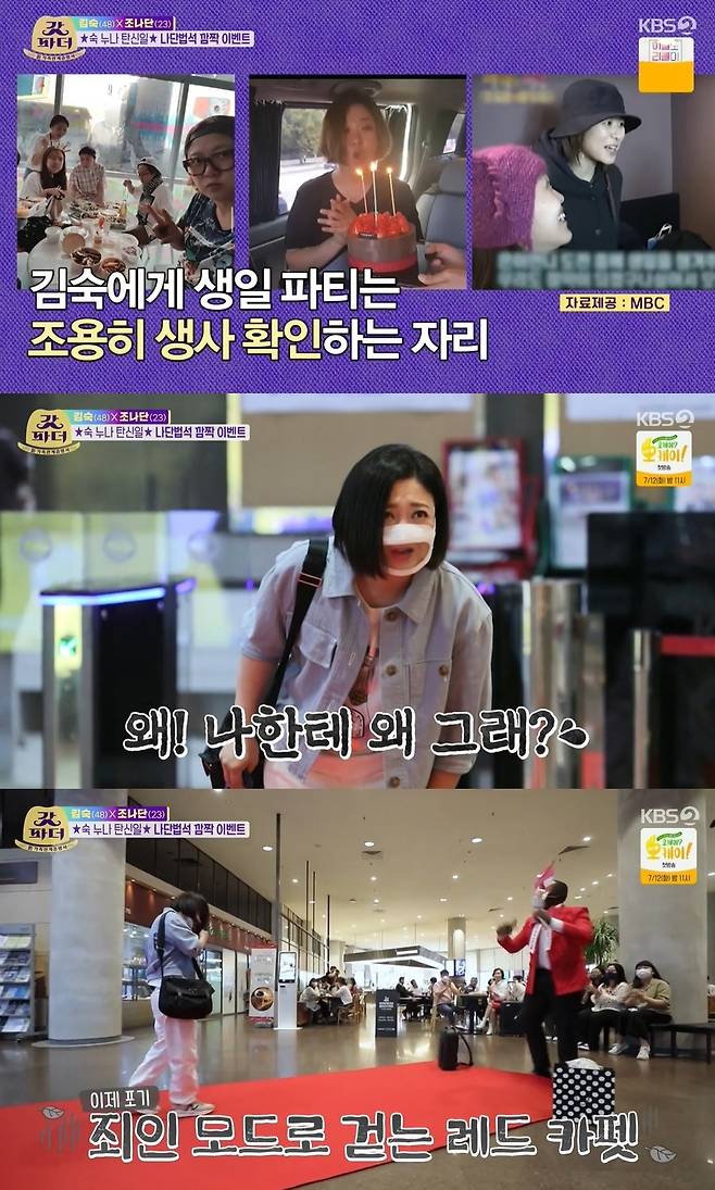 사실 김숙은 생일파티를 질색한다고. 김숙은 "마음은 너무 고맙지만 주변 사람들이 싫어할 수도 있지 않나"라고 설명했다.