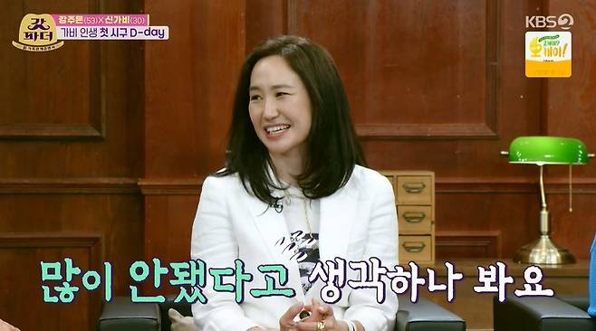 7월 5일 방송된 KBS 2TV '新가족관계증명서-갓파더'에서는 강주은이 가비의 첫 시구 스케줄을 서포트하기 위해 나섰다.
