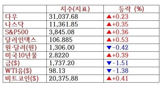 한편 이날 발표된 경제지표는 나쁘지 않았다. 미 공급관리협회(ISM)가 집계한 6월 서비스업 지수가 55.3으로 2020년 5월 이후 약 2년 만에 최저치를 기록했지만 시장 전망치(54.0)를 웃돌았다. 5월 미국 기업의 구인 건수는 1130만 건으로 집계돼 4월(1170만 건)에 비해 감소했지만 여전히 강한 노동시장을 보여줬다.
