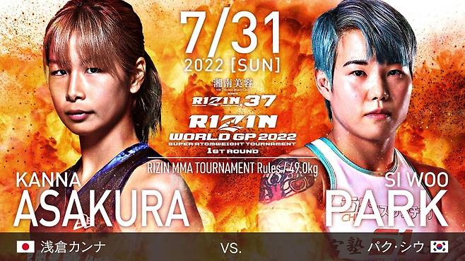 오는 31일 일본 사이타마슈퍼아레나에서 열리는 '라이진 월드 그랑프리 2022 슈퍼아톰급(49kg급) 토너먼트 1라운드'에서 준결승행 티켓을 놓고 아사쿠라 칸나(24, 일본)와 맞붙는다.