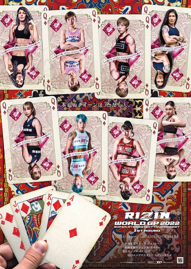 일본을 대표하는 파이터들이 싹 다 모였다. 현 라이진 슈퍼아톰급 챔피언 이자와 세이카, 전 라이진 슈퍼아톰급 챔피언 하마사키 아야카, 슛복싱 최강자 레나가 칼을 갈고 있다.