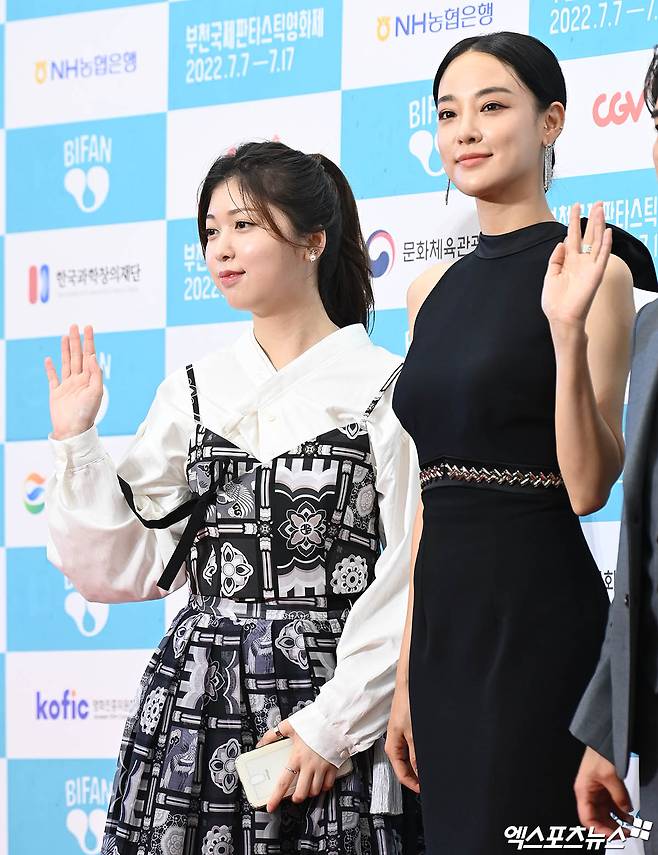(엑스포츠뉴스 부천, 박지영 기자) 7일 오후 경기도 부천시청 잔디광장에서 열린 '제26회 부천국제판타스틱영화제' 개막식 레드카펫 행사에 참석한 배우 안서현, 이주연이 포토타임을 갖고 있다.