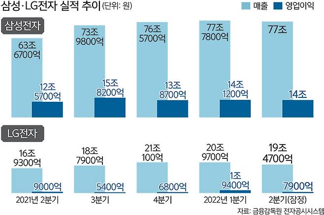 삼성전자와 LG전자가 7일 나란히 올해 2분기 실적 성적표를 공개했다.