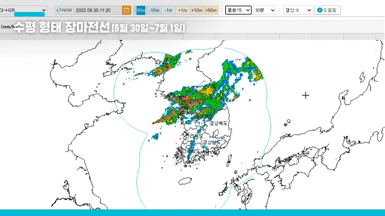 그러나 예측 가능한 수준에서 움직이던 장마 전선이 달라졌다. 6월 30일과 7월 1일 지나간 장마 전선을 보면 중부 지방을 수평으로 지나가는 모습을 볼 수 있다. 한반도에 허리띠를 두른 것처럼 동서 방향으로 비구름대가 발달했다. 제주와 남부 지방은 스치듯 지나고, 곧바로 중부로 옮겨가 엄청난 양의 비를 뿌리고 북한 쪽으로 올라갔다. 남부 지방은 폭염 속에 있고 중부 지방에는 단시간에 300mm가 넘는 비가 내려 침수 피해를 입었다. 남쪽의 북태평양고기압도 예년과 다른 모습을 보였는데, 북태평양고기압 중심부에 소용돌이가 생기면서 가장자리가 한반도 쪽으로 뻗어 나오면서 장마 전선에는 다량의 열대 공기 공급됐다. 많은 수증기를 머금고 장마 전선이 활성화 돼 6월 하순에도 중부 지방엔 기록적인 폭우가 쏟아졌고, 남부지방은 예년보다 일찍 고기압 영향권에 들어가면서 폭염과 열대야가 기승이었다.
