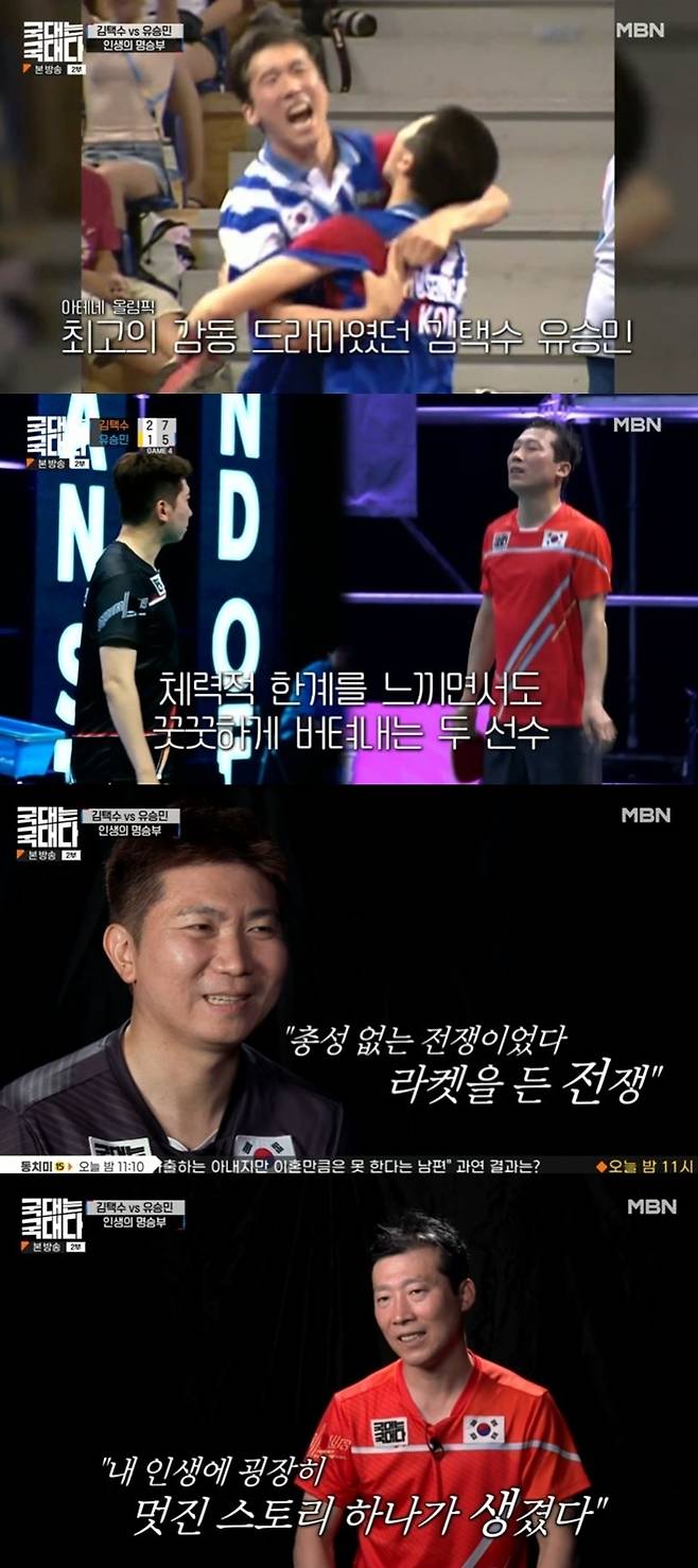 7월 9일 방송된 MBN ‘국대는 국대다’에서는 ‘아시아의 호랑이’ 김택수와 2004 아테네 올림픽 탁구 금메달리스트인 ‘탁구 황제’ 유승민의 사제 간 대결이 본격적으로 진행됐다.