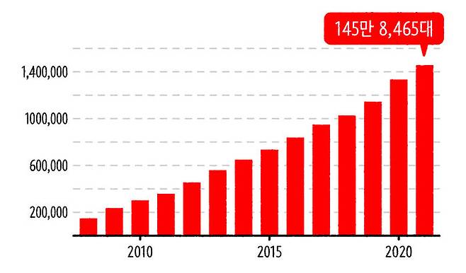 범죄를 수사하는데 CCTV가 역할을 톡톡히 하면서 공공 CCTV는 매년 증가하고 있습니다. 위 그래프 보이죠? 2018년 전국의 공공기관에 설치된 CCTV 개수는 100만 대를 돌파했고, 2021년엔 어느새 145만 8,465대의 CCTV가 설치됐어요. 민간 부문까지 포함한다면 얼마나 될까요? 사실 민간에 설치된 CCTV는 전체 규모를 파악하는 게 불가능한데, 국가인권위원회에서는 2017년 기준으로 민간과 공공기관을 합쳐 설치된 CCTV가 800만 대 이상으로 추정하고 있습니다. 아마 지금은 그보다 더 늘었겠죠.