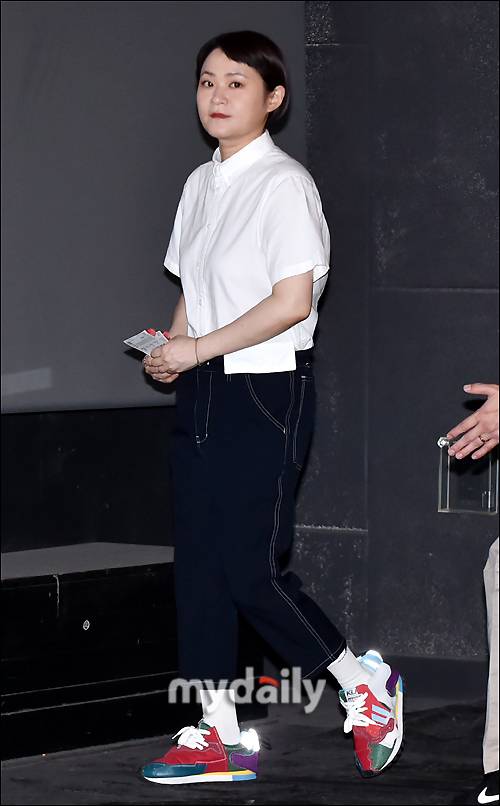 [마이데일리 = 송일섭 기자] 배우 김신영이 10일 오후 서울 목동CGV에서 진행된 영화 '헤어질 결심' (감독 박찬욱) 무대인사에 입장하고 있다.