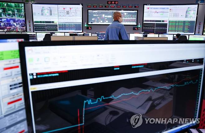 (서울=연합뉴스) 황광모 기자 = 폭염으로 전력 수급에 대해 비상이 걸린 10일 오후 서울 마포구 한국중부발전 서울발전본부 중앙제어실에서 직원들이 근무를 하고 있다.