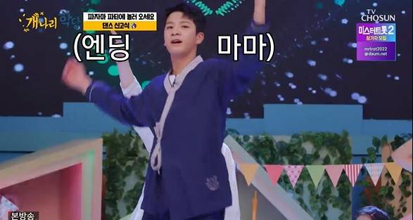 이어 "동원쌤도 해달라"는 개나리들의 주문에 정동원 역시 파워풀함 넘치는 '헤이마마'댄스를 췄고 개나리 멤버들 역시 함께 홀린 듯 떼춤을 추며 눈길을 사로잡았다.