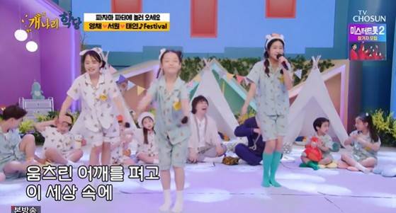 한편 지난 1월 첫 방송된 ‘개나리학당’은 ‘미스트롯’, ‘미스터트롯’, ‘국민가수’ 등 TV조선이 발굴한 어린이 출연자들이 보여주는 無자극, 無MSG, 無공해 예능 도전기로 눈길을 모았다.