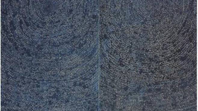 김환기 작품 중에서도 최고 걸작으로 평가되는 푸른색 전면점화인 '우주'는 작가의 작품 가운데 가장 큰 추상화이자 유일한 두폭화입니다.