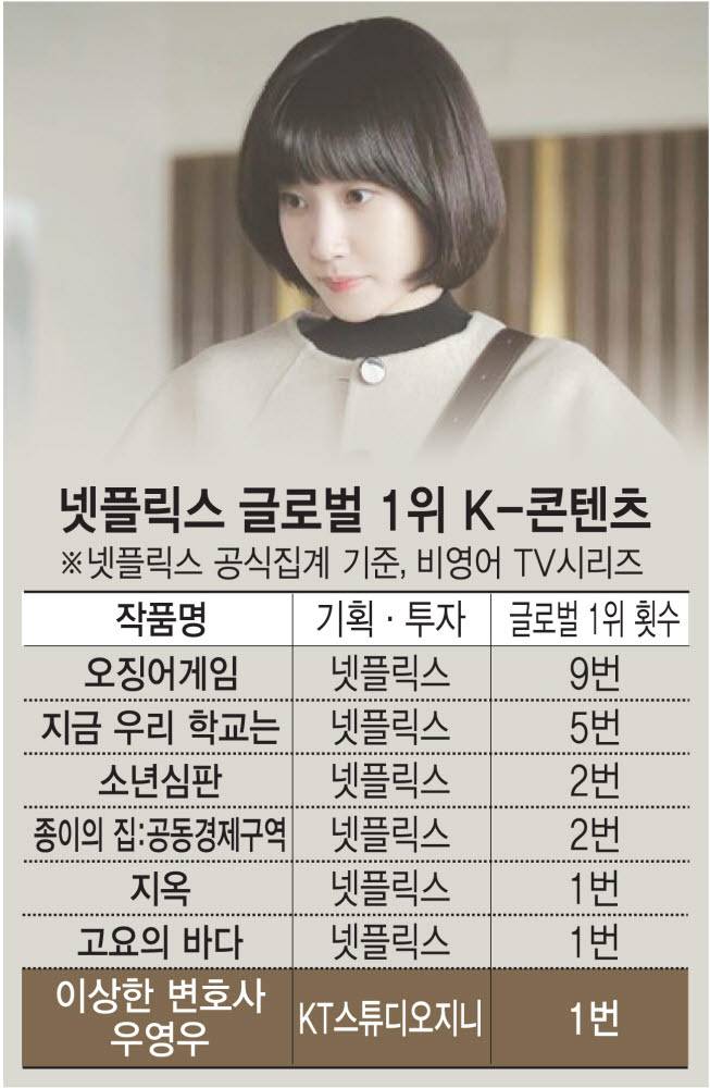 KT의 콘텐츠 저력..'우영우' 넷플릭스 1위 등극