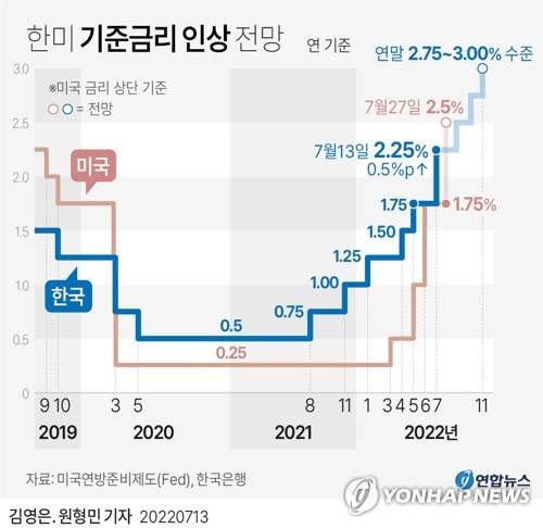 [그래픽] 한미 기준금리 인상 전망