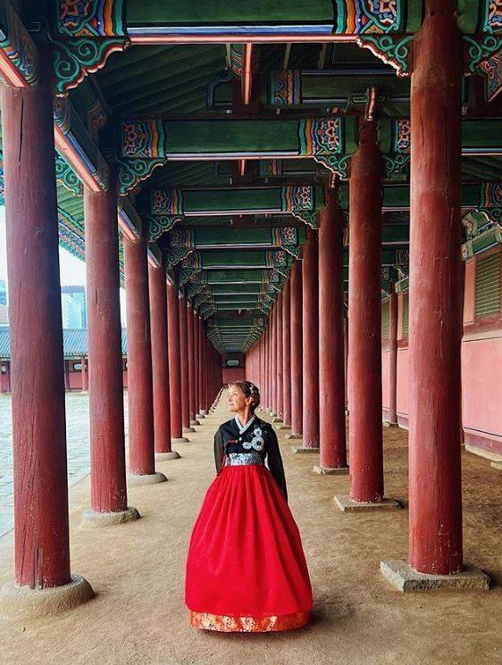 서울에서의 결혼식을 앞두고는 경복궁에서 검정색과 붉은색 한복을 입고 촬영한 사진을 인스타그램에 올리면서 “서울이 내 마음을 사로잡았다! 이것이 아름답게 지어진 전통 한복이다. 당신이 한복을 좋아하는 이유는?”이라고 묻기도 했다. 아들 크리스와 함께 찍힌 사진도 올리고 “크리스와 함께 전통 한복을 입고 있다! 이 옷의 세세함은 그저 각별한 것”이라고 적었다.