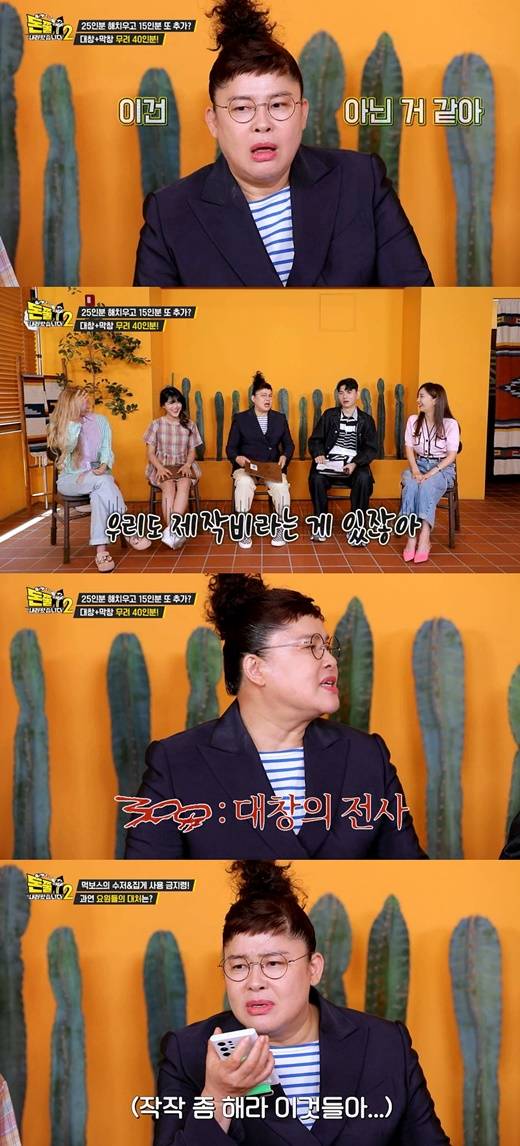 결국 보다 못한 이영자가 "그만해야 되겠다. 몇 백만 원의 돈이 들 것 같다. 사실 이래서 시간제한을 둔 거다. 우리도 제작비라는 게 있지 않나"라면서 "영화 제목 나왔다. '대창 300'이다"라고 토로해 폭소를 유발한다.