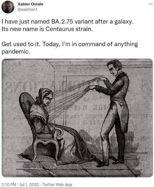 보도에 따르면 트위터로 코로나19 관련 소식을 공유해온 제이비어 오스탈레는 지난 1일 "내가 막 BA.2.75 변이에 은하의 이름을 붙였다. 새 이름은 켄타우로스다"라는 트윗을 올렸습니다.