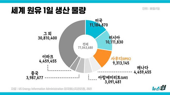 세계석유시장에서 사우디 아라비아가 차지하는 비중은 어느정도일까?