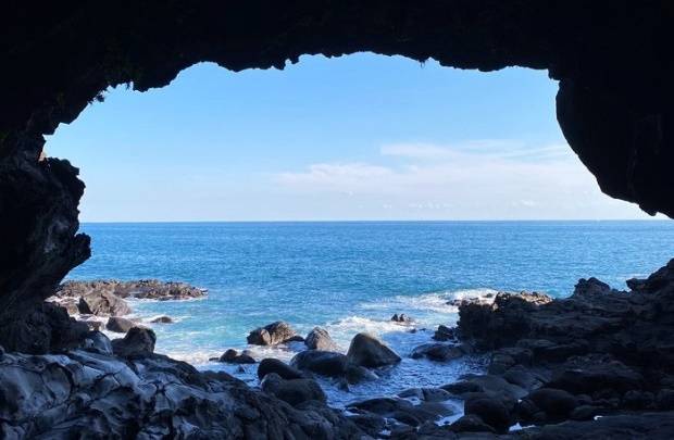 이 동굴 안에서 바라본 바깥풍경은 절벽과 바다가 어우러지는 풍경으로 마치 한 폭의 그림과 같습니다.