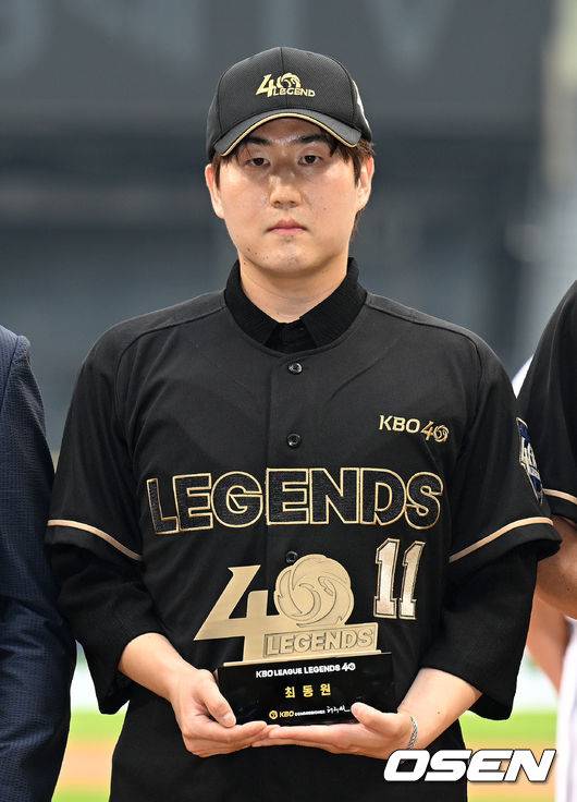 KBO 레전드로 선정된 최동원의 아들 최기호 씨가 기념촬영을 하고 있다. 2022.07.16 /sunday@osen.co.kr