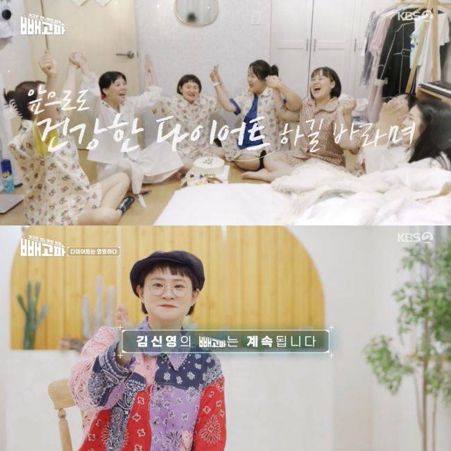 마지막으로 김신영은 “나도 살가운 성격이 아니라 미안한 게 많다. 어떻게 보면 전문성도 없고 자격증도 없는 나를”이라고 고백했다. 이에 박문치는 “언니가 몸으로 보여줬다. 언니 자체가 자격증”이라고 말했고 김신영은 “식단 말고 진심으로 친해지고 싶다”고 답했다. 이어 김신영은 2기 모집을 예고하며 송은이, 가비, 신동 등을 언급했다. 김신영은 “김신영이 살아있는 한 김신영의 빼고파는 계속된다”고 말했고 그렇게 ‘빼고파’는 3개월의 대장정을 마무리했다.