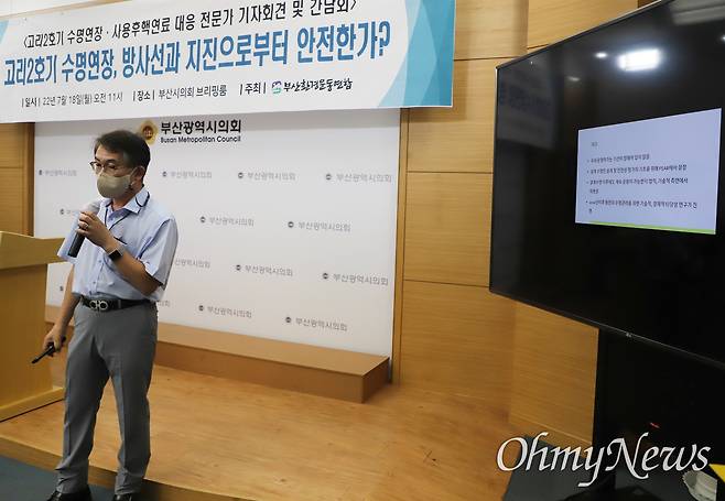 숫자는 다소 구체적이었다. 윤석열 정부가 노후원전의 수명연장을 추진하는 가운데, 원자력안전연구소 소장인 한병섭 박사가 걱정스러운 분석 결과를 내놨다. 한 박사는 18일 부산환경운동연합 등의 주최로 부산시의회 브리핑룸에서 열린 '고리2호기 수명연장 방사선과 지진으로부터 안전한가' 기자간담회의 첫 번째 발제자였다.