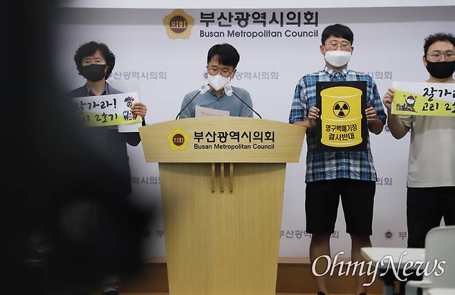 | ▲ 18일 부산시의회 브리핑룸에서 ‘고리2호기 수명연장 방사선과 지진으로부터 안전한가?’와 관련한 기자회견, 기자간담회가 열리고 있다. |