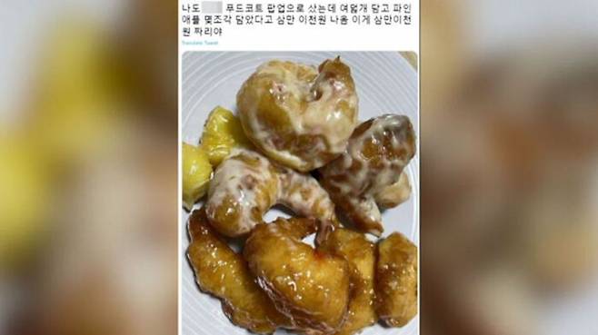 누리꾼 A 씨는 백화점 푸드코트에서 산 새우강정 사진을 공개하면서"새우 8알에 2만 원인데, 업체 문제인지 물가 문제인지 모르겠다"고 토로했습니다.