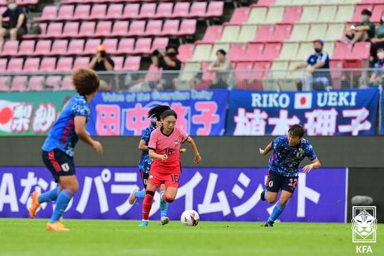 (서울=뉴스1) = 여자 축구대표팀 장슬기 선수가 19일 일본 가시마 경기장에서 열린 2022 EAFF E-1 챔피언십 대한민국과 일본의 경기에서 드리블 돌파를 하고 있다. (대한축구협회 제공) 2022.7.19/뉴스1