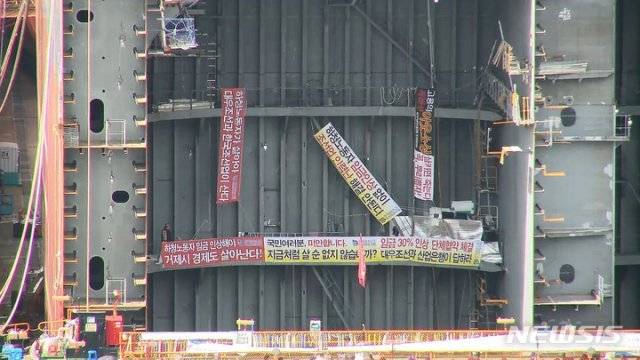 20일 조선업계 및 노동계에 따르면 하청지회와 대우조선 협력사 대표들은 이날 오전 파업 중단을 위한 협상을 재개했다. 15일 교섭 재개 후 엿새째다. 하청지회는 지난달 2일 임금 30% 인상, 상여금 300% 지급, 노조 전임자 인정, 단체교섭권 등을 요구하며 파업을 시작했다. 지난달 18일부터는 하청지회 노조원 7명이 대우조선 옥포조선소 1독 점거한 채 농성을 이어오고 있다.