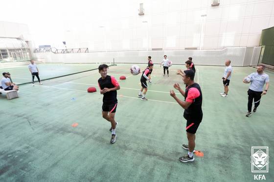 (서울=뉴스1) 김진환 기자 = 2022 동아시아축구연맹(EAFF) E1 챔피언십(동아시안컵)에 참가한 대한민국 남자축구대표팀이 23일 일본 아이치현 힐튼 나고야에서 홍콩과의 2차전 경기를 앞두고 훈련을 하고 있다. (대한축구협회 제공) 2022.7.23/뉴스1