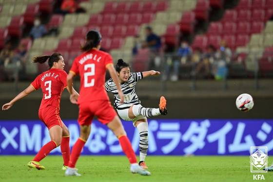 (서울=뉴스1) 김진환 기자 = 여자 축구대표팀 최유리가 23일 일본 가시마 경기장에서 열린 2022 EAFF E-1 챔피언십 대한민국과 중국의 경기에서 골을 성공시키고 있다. (대한축구협회 제공) 2022.7.23/뉴스1