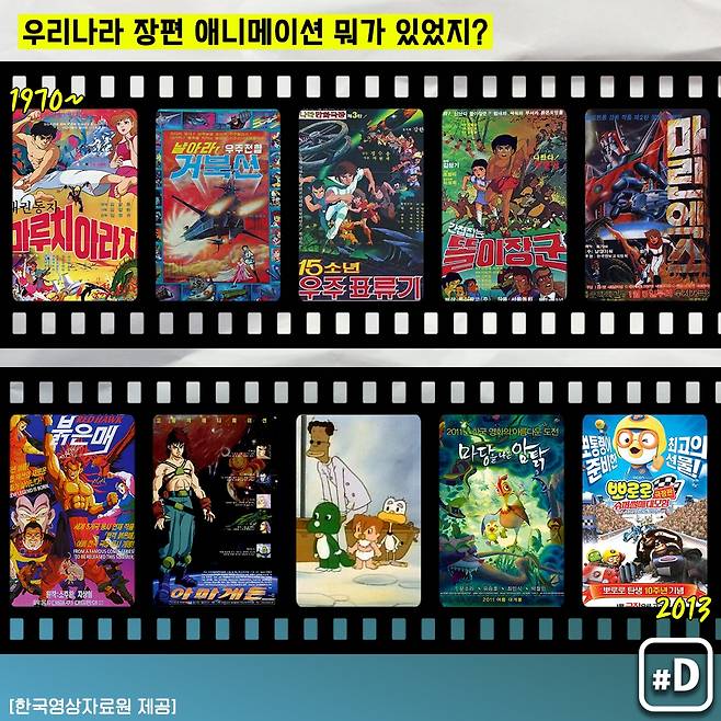 1980년대 들어선 문화계가 위축되면서 '똘이장군' 시리즈 등 반공을 내세우는 작품들이 극장을 채웠고, 1990년대엔 대기업이 제작ㆍ투자한 '아마게돈'(1996)과 '붉은매'(1995), '아기공룡 둘리'(1996) 등이 선보였죠.